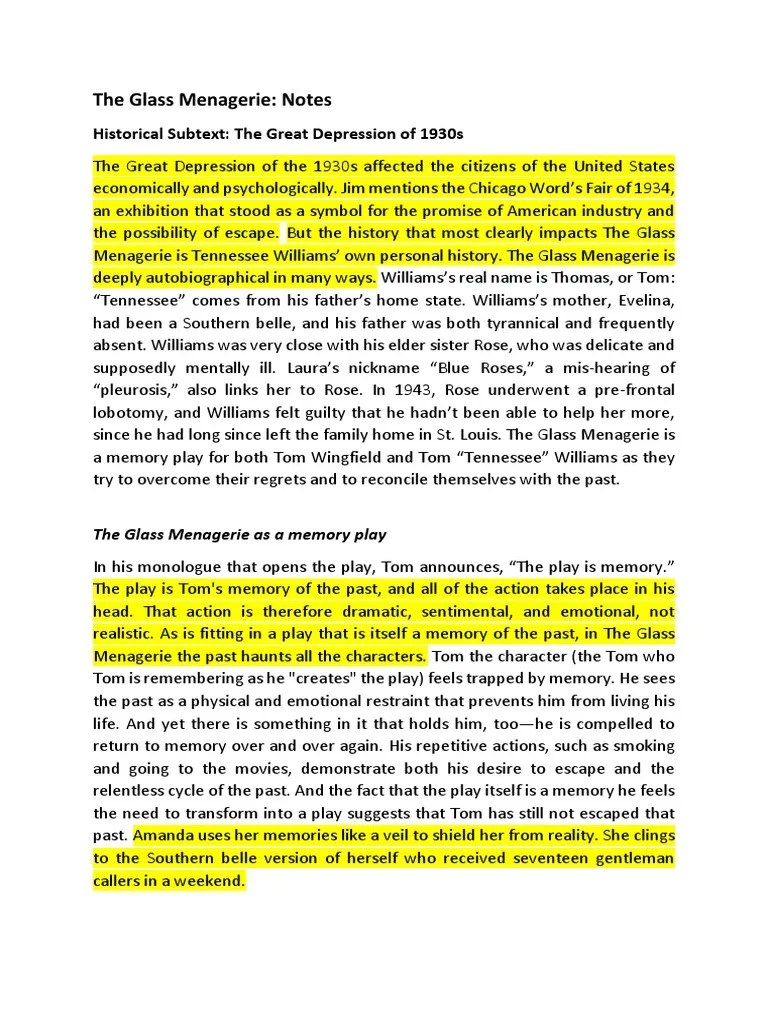 Analysis Of The Glass Menagerie ... | 850x1100 px